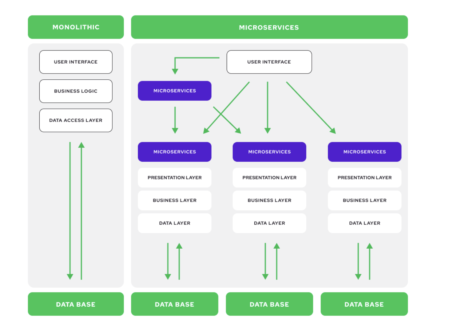 Check the diagram below, which compares a monolith with a composite architecture and microservices.