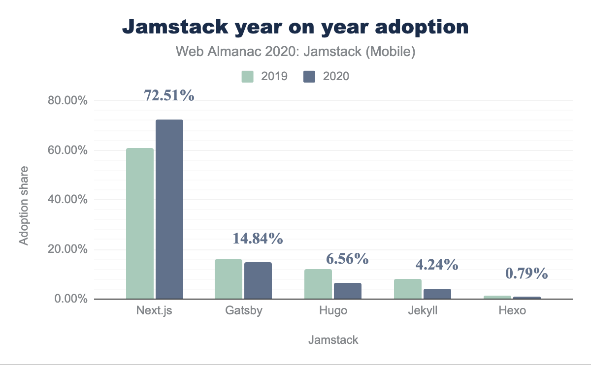 Take a look at the latest 2020 Web Almanac Jamstack year on year adoption data: