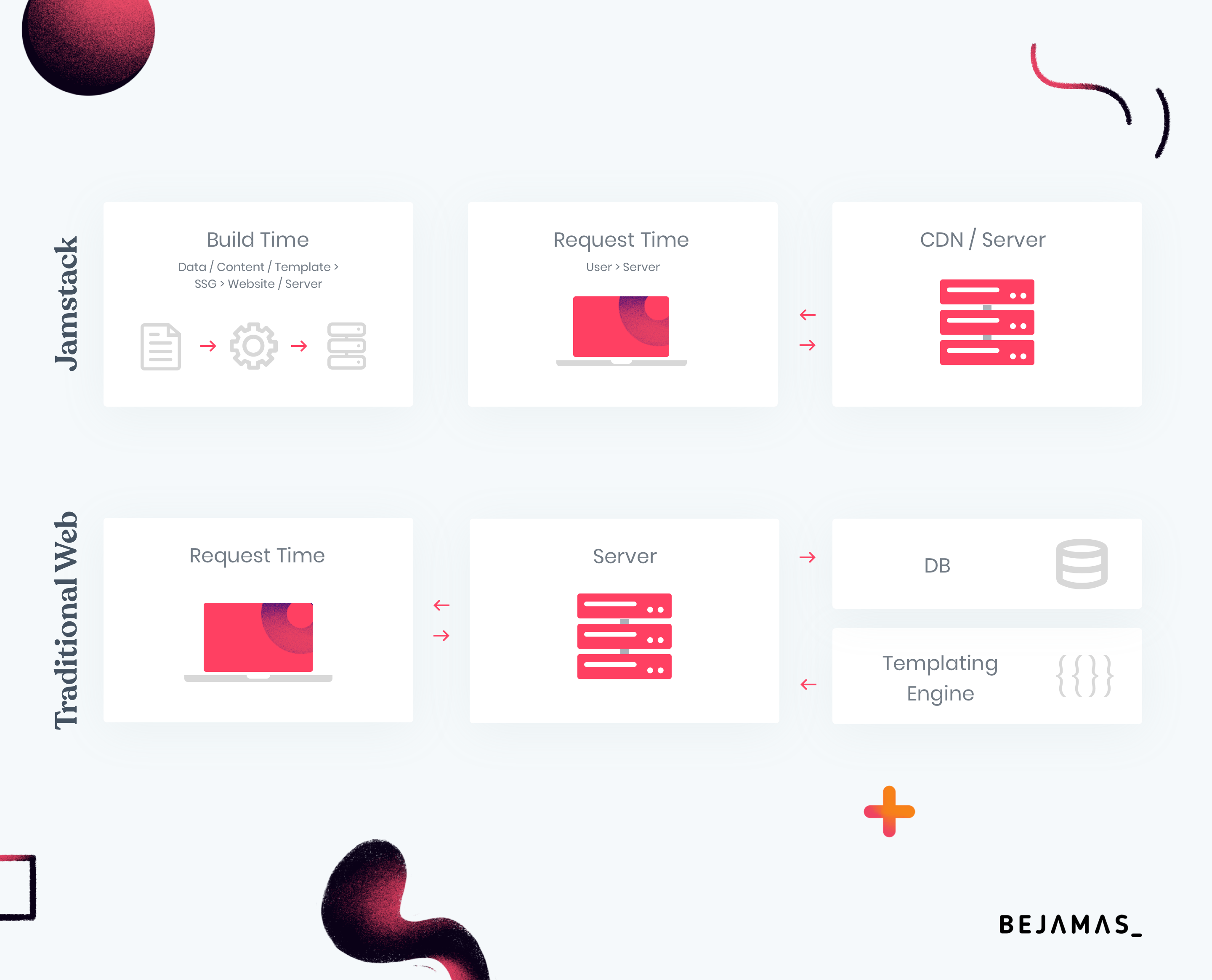 With that in mind, this post here aims to explain the main idea behind Jamstack, how it differs from traditional stacks, why and when it is a better solution for web developers and clients.