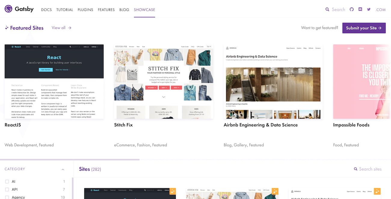 See websites developed with Gatsby