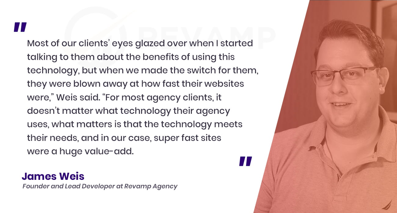 All of the sites were built on WordPress - Revamp had been a WordPress shop for several years and, generally, the team and their clients were content with the service. But what Weis and his team found was there was no amount of plugins they could use, and no amount of front-end optimizations they could deploy to get the sites to load as fast as they wanted.